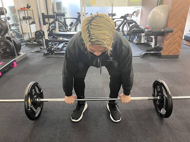 ์๋ฉ์ด๋ฅผ ๋ค๋ก ๋นผ๋ฉด์ ์์ฒด๋ฅผ ์์ด๊ณ ๋ฌด๊ฒ๋ฅผ ๋ ๋ค.