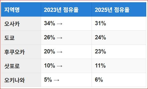 ✅ 삿포로·오키나와처럼 자연과 여유를 즐길 수 있는 지역 역시 주목받고 있죠.