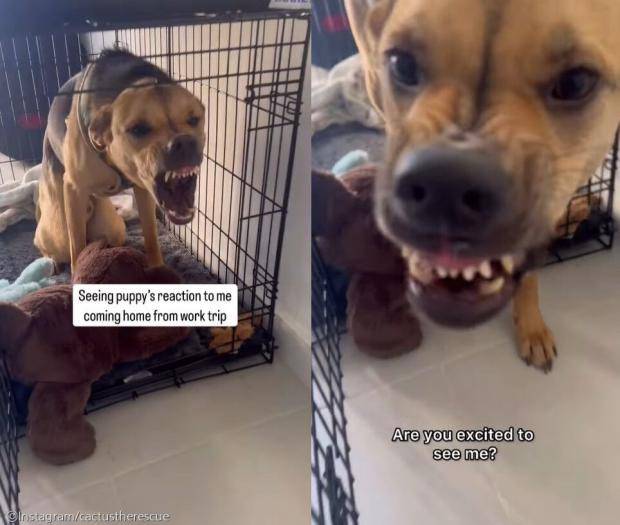 [노트펫] 출장에서 돌아온 보호자를 '건치 미소'로 반겨주는 강아지의 모습이 웃음을 전하고 있다.