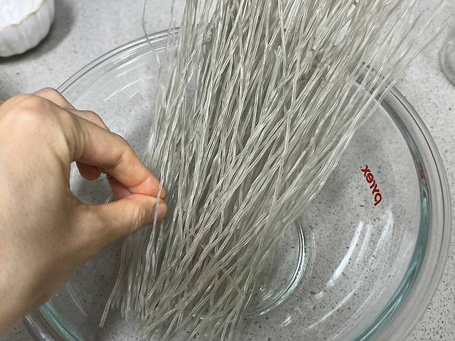잡채나 전골 요리를 준비할 때 가장 번거로운 과정 중 하나가 바로 딱딱한 당면을 불리는 일입니다. 당면은 길이가 길어 둥근 볼이나 냄비에 담으려고 하면 당면의 긴 길이 때문에 끝부분이 삐져나오기 일쑤입니다. 억지로 밀어 넣다 보면 당면이 부러지기도 합니다.