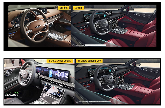 유튜브 채널 뉴욕맘모스는 업데이트되는 G80의 실내를 예상하는 새로운 비공식 렌더링을 공개했다. 렌더링의 기반이 되는 최신 스파이샷 속 G80 인테리어는 최근 출시된 GV80 및 GV80 쿠페와 상당 부분 디자인을 공유한 모습이다.