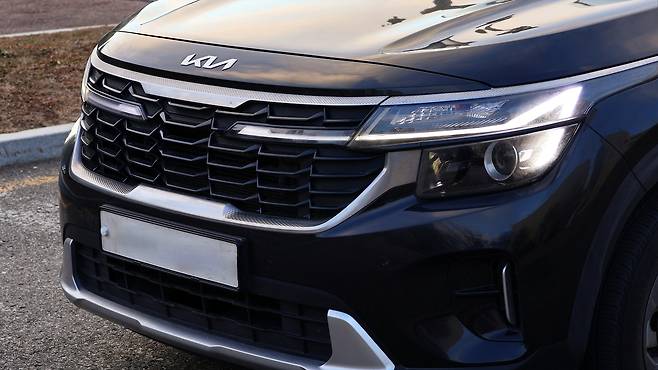 더 뉴 셀토스 프레스티지 등급의 외관이다. 별도로 스타일 패키지를 추가하지 않은 모습이라, 트렌디 등급과 큰 차이가 없어 보인다. 라디에이터 그릴이 유광 블랙으로 마감되며, 차체 언더가니시가 조금 더 묵직한 색감의 메탈릭 실버로 변경된다. 요즘 아반떼를 비롯해 준중형 차량도 LED 헤드램프가 기본인 경우가 많은데, 셀토스는 아직까지 벌브 타입이 채택된 모습이다. 다소 아쉬운 부분인데, 그나마 주간 주행등은 LED 방식이 기본이긴 하다. 전면 디자인 자체에 대한 만족도는 높다. 반면, 시그니처 등급과의 대비는 어쩔 수 없는 차등같다.