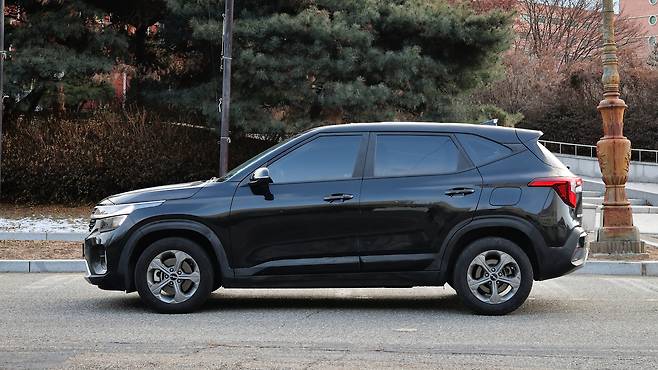 전체적인 디자인을 살펴보았을 때 가장 아쉬운 부분은 휠이었다. 디자인보다는 휠 사이즈 자체가 작다 보니 차량의 스탠스가 가볍게 느껴진다. 사이즈는 16인치로, 그나마 메탈 실버 색상을 택하면서 눈에 확 들어오진 않는 것 같다. 그래도 측면에서 바라보는 디자인 역시 기본기는 훌륭하다. 소형 SUV 치고 높은 전고와 안정적인 비율이 특징이다. 리어펜더를 강조하는 웨이스트라인도 차체 볼륨감을 더해준다. 참고로 2025년형 모델부터는 시그니처 등급과 같이 크롬 벨트라인 몰딩이 추가된다. 창문 하단과 C필러를 장식하는 액세서리를 뜻한다.