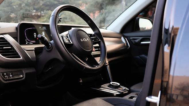 셀토스는 기본적으로 직물 시트와 우레탄 소재의 스티어링 휠이 채택된다. 해당 프레스티지 등급부터 가죽 스티어링 휠과 시트가 적용된다. 그 외에도 변속기가 전자식이라 전체적인 실내 개방감과 고급감이 상향된다. 또, 크래시패드나 콘솔 박스, 센터 콘솔 하이그로시 패널 등 일부분 마감 처리 자체가 개선되긴 했다. 앞서 언급한 내용처럼 시승 차량은 내비게이션 옵션을 별도 추가했고, 기본적으로는 8인치 디스플레이 오디오가 적용된다. 4.2인치 컬러 LCD를 포함한 계기판도 디지털 타입이다 보니, 디지털 클러스터 없이도 와이드 스크린 디자인처럼 깔끔한 대시보드 디자인이 구현된다.
