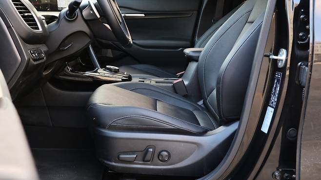 해당 시승차량은 셀토스 프레스티지 등급에 '10.25인치 내비게이션 패키지'만 적용되어 있다. 이름처럼 10.25인치 내비게이션이 적용되고, 풀 오토 에어컨, 공기 청정 모드, 오토 디포그 같은 공조 기능이 함께 추가된다. 내비게이션 패키지만 추가해도 편의 기능엔 불편함이 없다. 프레스티지 기본 옵션으로 1열 통풍시트와 열선시트가 준비되어 있고, 버튼 시동 같은 필수 장비들은 전부 탑재되어 있기 때문이다. 운전석 파워시트나 스마트폰 무선 충전 패드, 오토홀드 같은 옵션들도 넉넉함을 더한다. 참고로 조수석 시트는 수동식이다.