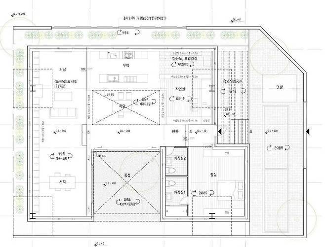 특히 현관 앞의 넓은 선큰으로 인해 건물이 대지에 묻히는 부분이 최소화되었고 선큰 자체가 거대한 트렌치가 되어 침수 피해 방지 역할을 한다.