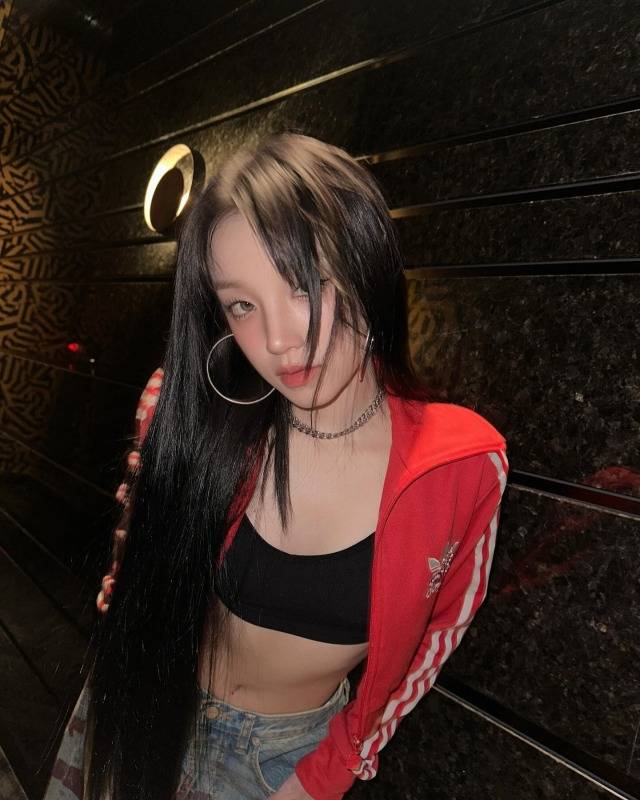그룹 (여자)아이들 멤버 우기가 늘씬한 허리로 네티즌의 시선을 끌었다.