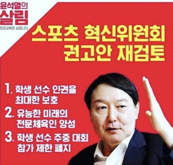 그러나 윤석열 대통령이 한국 스포츠를 위한다면, 우선순위로 나서야 할 부분은 본인의 공약 사항인 최저학력제와 주말 대회 폐지 등 운동선수를 위한 공약 이행이 아닌가 싶다. 지금처럼 최저학력제가 계속 이어진다면, 선수들이 공부하는 시간만 늘고 운동하는 시간이 짧아지는 운동선수의 기본을 할 수 없는 시간이 길어진다면, 한국 야구는 물론 한국 스포츠의 미래는 결국 없을 것이다.