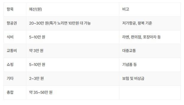 후쿠오카 당일치기 예산계획
