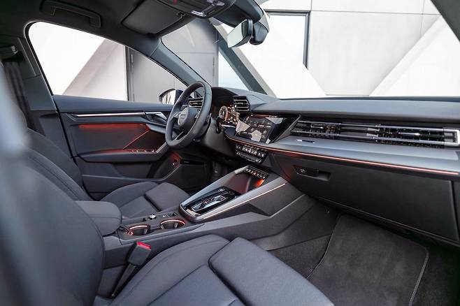 그 밖에도 실내 소재의 업그레이드 또한 눈여겨 볼 지점이다. 기본 모델에는 앞좌석 정동 및 열선과 요추지지대가 포함된 가죽 시트 등이 적용되었다. 프리미엄과 콰트로 프리미엄 모델에는 S라인 인테리어 패키지를 적용했다. 스포츠 시트와 S로고 알루미늄 도어실 트림 등이 포함되어 있다. 이번 페이스리프트를 통해 재탄생한 A3의 내부는 보다 고급스러운 분위기를 연출한다.