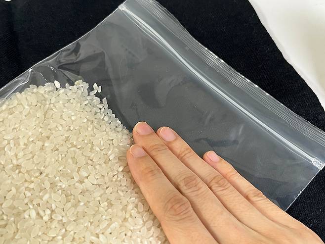 페트병의 잔여 세균이 걱정된다면 페트병 대신 지퍼백을 활용해 보세요. 쌀을 지퍼백의 2/3 정도 채운 후 공기를 빼서 밀봉시킵니다.