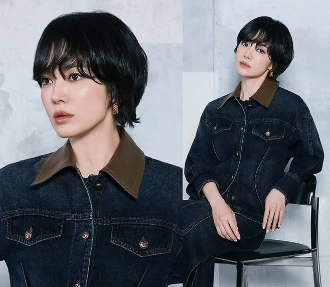공개한 화보에서 송혜교는 다크 네이비 컬러의 데님 재킷과 데님 롱 스커트의 청청패션으로 우아하면서도 품격있는 청청 슈트룩을 선보였다.