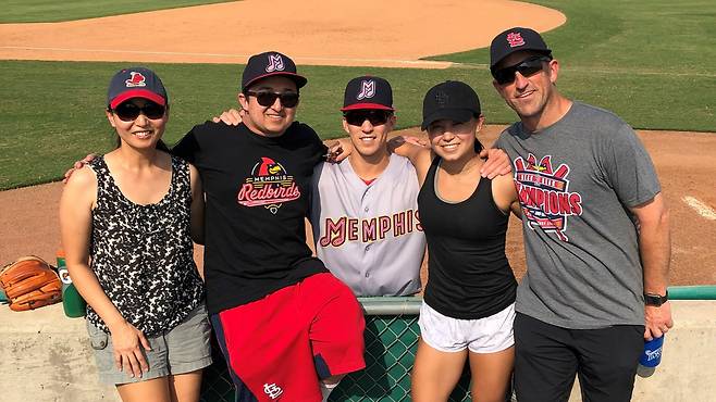 에드먼 가족. 왼쪽부터 어머니 곽경아 씨, 형 존 3세, 토미 본인, 여동생 엘리스, 아버지 존 에드먼 주니어. 인스타그램 캡처