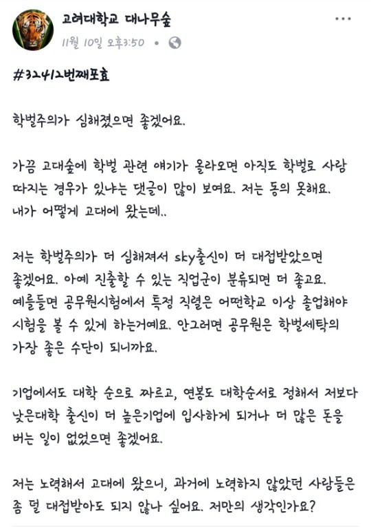 학벌주의가 심해졌으면 좋겠다는 명문대생의 외침