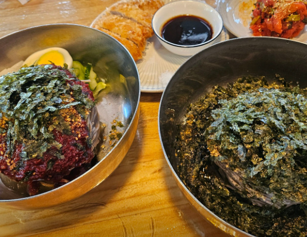 들기름 막국수 8,000원: 김가루 듬뿍! 고소함에 반하게 되는 시그니처 메뉴