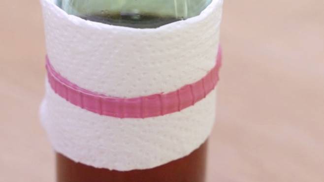 이렇게 하면 물에 젖은 키친타월이 음료수 열을 더욱 쉽고 빠르게 뺏었어 더욱 빠르게 시원한 음료를 드실 수 있답니다. 더울 때 젖은 수건으로 몸을 감싸면 몸이 더욱 시원해지는 것과 같아요!