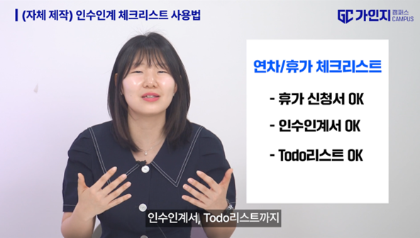 '연차/휴가 체크리스트와 인수인계서 사용법'에 대해 설명하는 유하림 선임컨설턴트, [출처: 가인지캠퍼스]