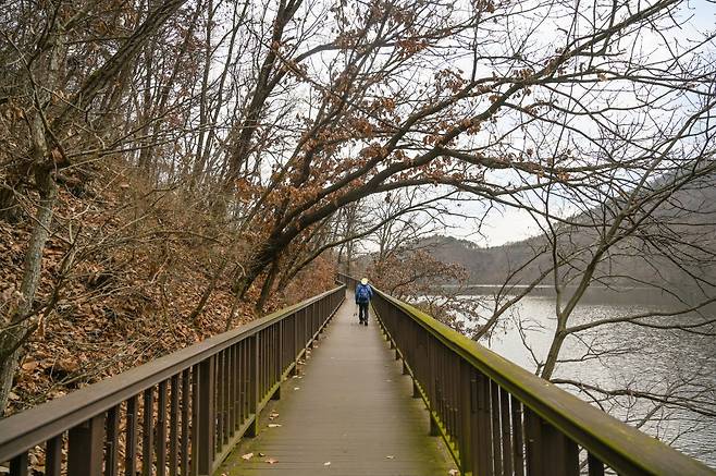 겨울철에는 초평호 수면 위로 옅은 물안개가 피어오르고, 호수를 둘러싼 산 능선이 또렷하게 드러납니다. 농다리에서 출렁다리까지 왕복 약 3km로, 40분 내외면 충분히 다녀올 수 있어 겨울 산책 코스로도 부담이 없습니다.