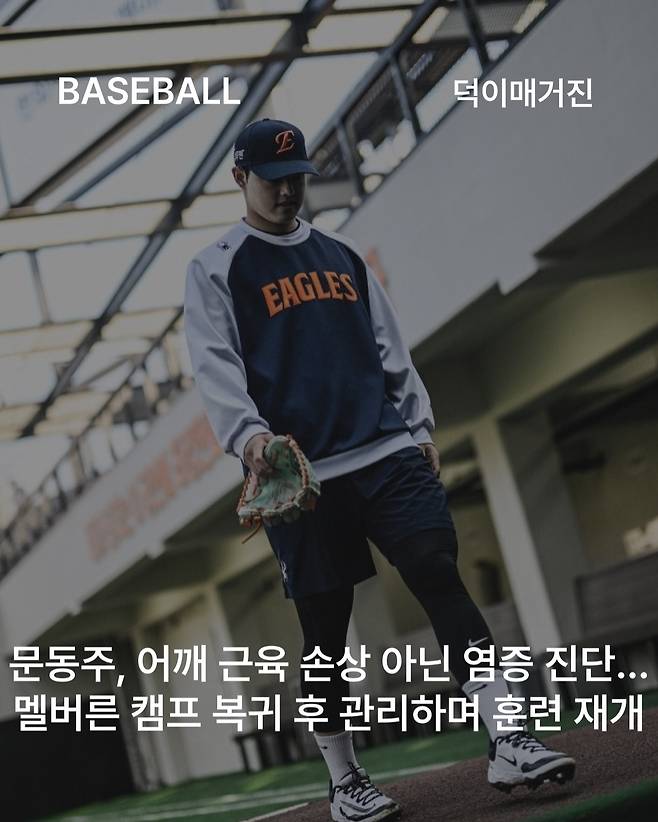 8일 멜버른 스프링캠프 현장에서 만난 한화 관계자는 “문동주가 병원 검진 결과 어깨 염증 증세 소견을 받았다”며 “근육 손상은 아니지만 불편감이 있어 당분간은 관리가 필요하다는 의료진 의견을 받았다”고 설명했습니다.
