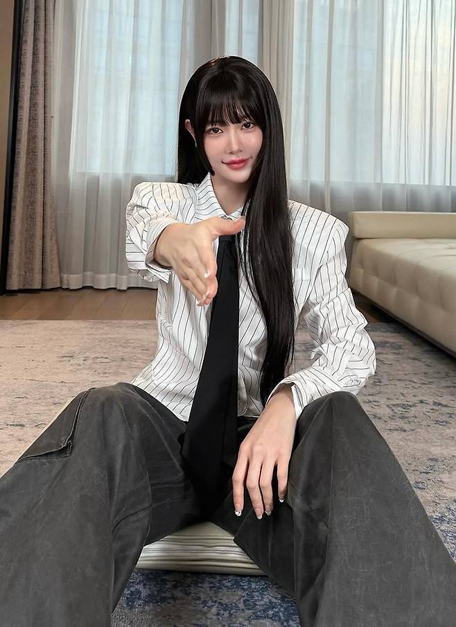 공개한 사진에서 클라라는 길게 늘어뜨린 머릿결에 와이드 핏 카고 팬츠를 입고 스트라이프 셔츠에 블랙 타이를 매치한 데일리룩으로 스타일리시한 인형 미모를 발산했다.