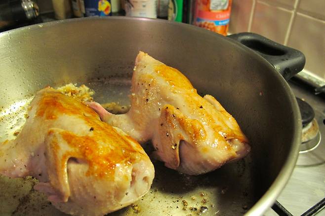본래 푸아그라는 겨울철을 버티기 위해 모이를 잔뜩 주워 먹어서 양분이 간에 많이 축적된 철새를 이용해서 요리합니다.
