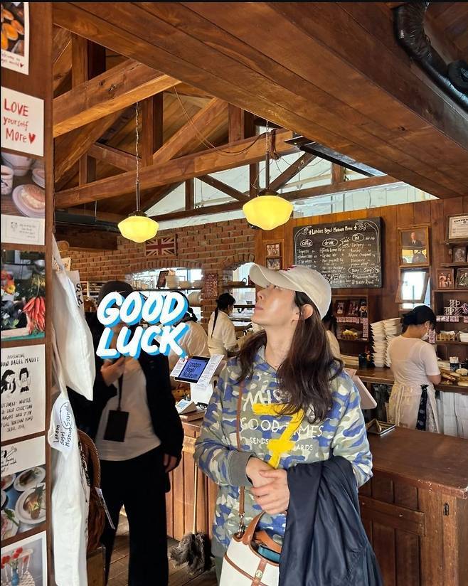 여기에 송윤아는 크로스백과 캡 모자로 포인트를 주어 자연스러우면서도 멋스러운 일상 패션을 완성했습니다.