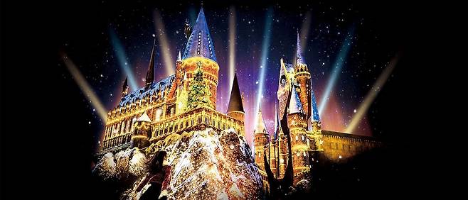 위저딩 월드 오브 해리 포터 구역 내 성(캐슬)에서 펼쳐지는 매핑쇼 및 눈·빛·음악이 결합된 공연입니다. 크리스마스 시즌 한정으로 마법 세계가 겨울풍으로 재단장됩니다.