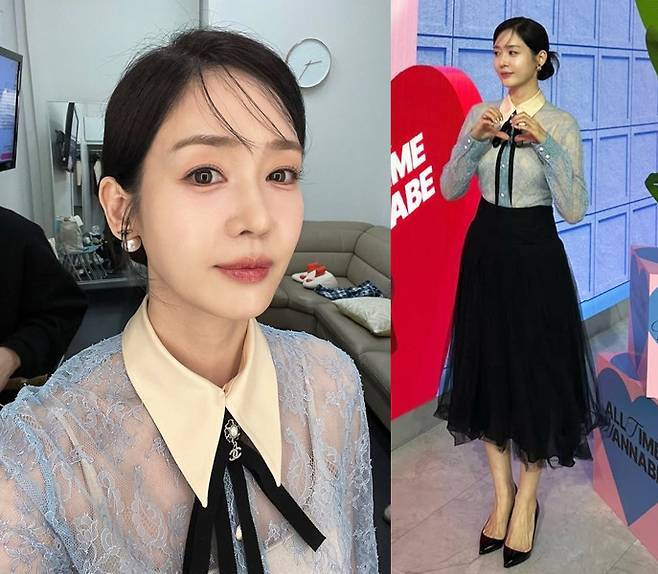 가수 겸 배우 성유리가 단정하면서도 우아한 블라우스룩으로 시선을 사로잡았습니다.
