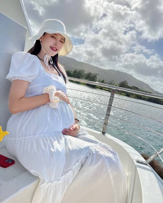 사진 속 현아는 만삭임에도 비키니 자태를 자랑했다.