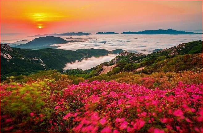 따스한 햇살이 온 산을 감싸는 5월, 경남 합천의 황매산에는 분홍빛 철쭉이 산허리를 곱게 물들입니다.