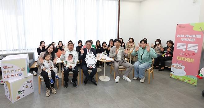 행사는 카페에서 커피 한 잔과 함께 시민들이 평소 느끼는 출산과 육아·돌봄 관련 불편 사항과 제안을 이야기하는 형식으로 진행해 허심탄회하게 소통을 이어갔다.