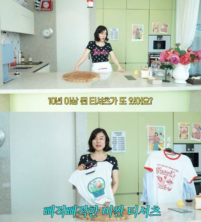 최화정은 영상에서 “내가 입은 이 티셔츠, 10년이 넘었다.