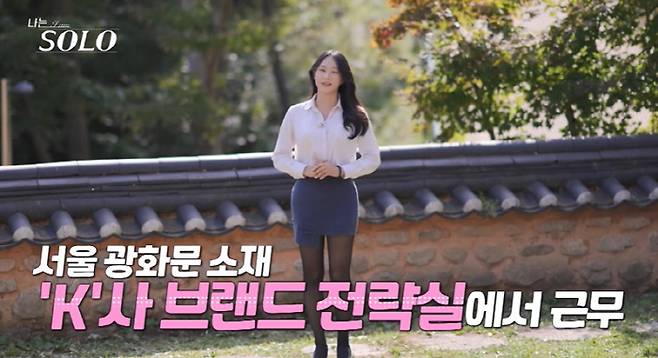 이날 옥순(가명)은 자신을 대기업 'K'사 브랜드 전략실 직원이라고 소개했다. 이때 자막으로는 '서울 광화문 소재'라는 설명이 덧붙여졌고, 이를 들은 남성 출연자들은 완벽해 보이는 옥순에게 감탄했다.