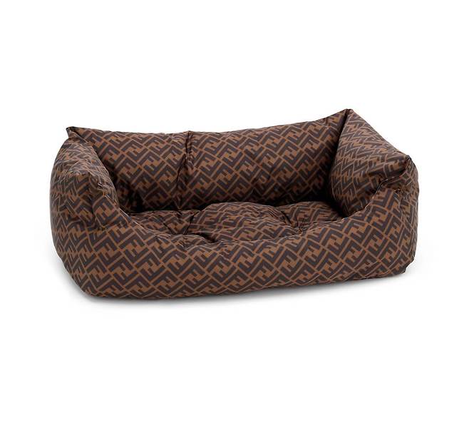 메종의 아이코닉한 토바코 톤에 FF 패턴이 새겨진 나일론 소재 패딩 반려견 침대 Fendi.