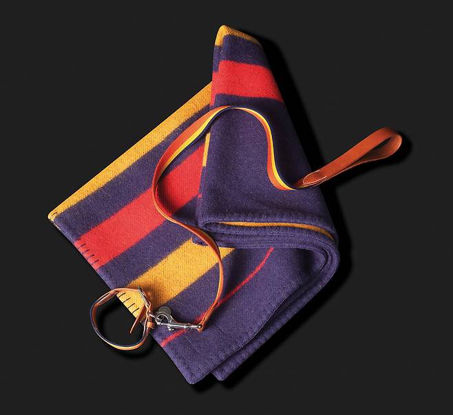 스트라이프 패턴 블랭킷과 목줄 모두 Hermes.