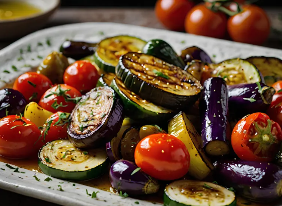 ▶ 구운 가지와 채소를 담고 드레싱을 뿌려 완성합니다.