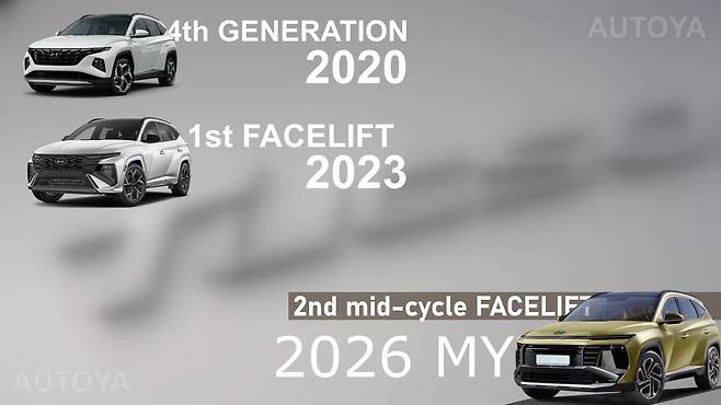 최근엔 유튜브 채널 ‘AutoYa’에서 2026년 또는 2027년형으로 출시가 기대되는 투싼의 두 번째 페이스리프트를 가상 렌더링으로 구현한 CGI 영상을 공개했다. 5세대 투싼(NX5) 풀체인지는 2028~2029년형으로 출시될 전망이다.