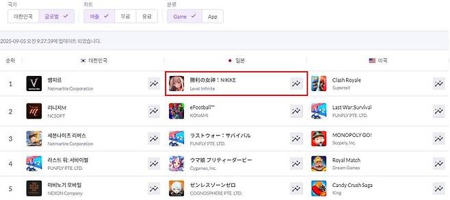승리의 여신: 니케, 일본 앱스토어 매출 순위 1위 기록