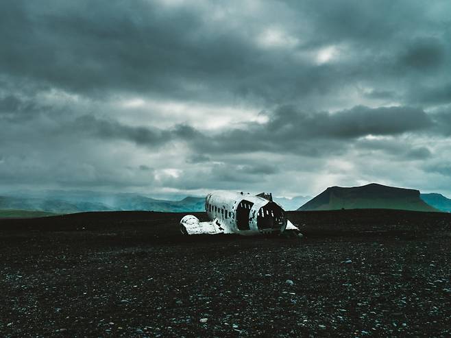 ❶ 아이슬란드 남부 솔헤이마산두르( Sólheimasandur) 해변의 미국 해군 비행기 잔해.