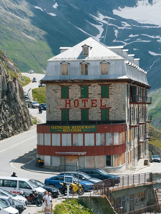 ❶ 스위스 발레(Valis)주 푸르카 패스(Furka Pass)를 따라 달릴 때 마주하는 아이코닉 호텔.