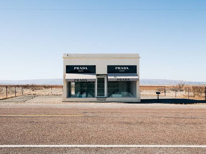 ❷ 실제 프라다 매장이 아니다. 2005년, 세계적으로 유명한 아티스트 듀오 엘름그린&드라그셋(Elmgreen & Dragset)이 만든 영구 설치 미술 작품이다. 제작 비용은 약 12만 달러. 사이즈는 4.6m x 7.6m