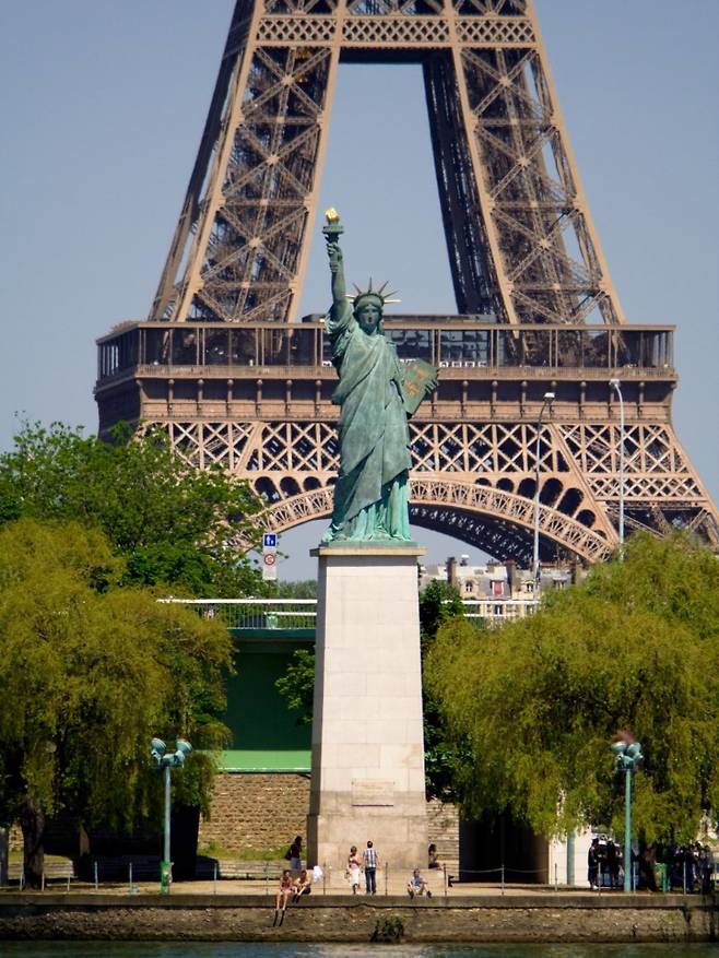 ❷ 미국 독립 100년을 기념해 프랑스가 미국에 기증한 자유의 여신상은 1886년에 완성됐다. 시뉴섬의 여신상은 1889년 파리의 미국인 커뮤니티가 이에 대한 감사의 표시로 증정한 복제품이다.