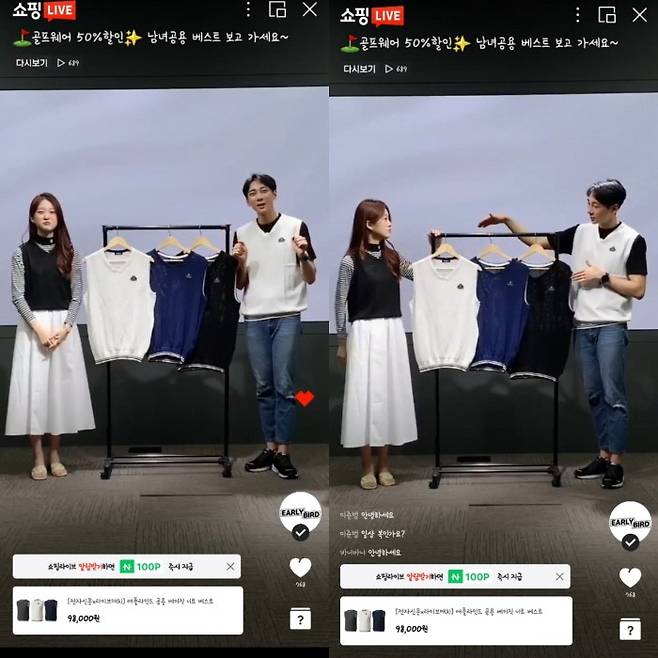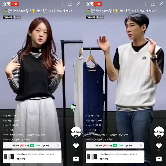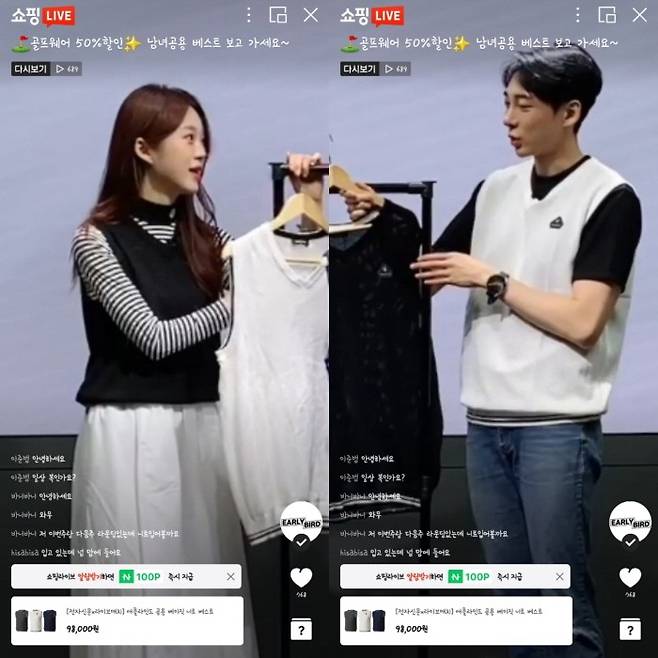 특히 훈훈한 비주얼과 피지컬의 두 진행자가 제시하는 다양한 코디법과 함께 기존가(9만8000원) 대비 50% 할인된 파격특가 적용은 다양한 대중의 시선을 모았다.