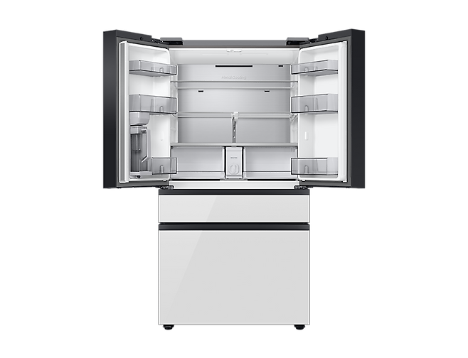 삼성전자 비스포크 글램 RF75CB821312은 747L 용량의 4도어 제품으로, 2023년 새롭게 출시된 신형 모델이다. 상단에 448L 용량의 냉장실, 하단에 219L 용량의 냉동실이 있으며 그 사이로 5단계 온도 설정이 가능한 맞춤 보관실이 위치해 있어, 자주 사용하는 식재료나 아이들이 꺼내 마실 수 있는 음료, 아이스크림 등을 자유롭게 보관할 수 있다. 또한 냉장실 내부에는 1.4L 물을 자동으로 채워주는 정수기까지 마련되어 있으며, 두 가지 크기의 얼음도 자동으로 만들어져 맞벌이 부부와 주부의 일거리를 줄여주고 요리할 때도 편리하다.