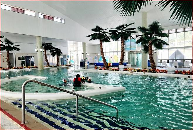 어린이를 위한 배려: 수심 1m 내외의 키즈풀이 별도로 조성되어 있어 가족 단위 방문객도 안심하고 물놀이를 즐길 수 있습니다. 중앙의 대형 수영장은 온천수의 따뜻한 온도가 일정하게 유지되어 한겨울에도 추위 걱정 없이 헤엄칠 수 있는 특별한 공간이 됩니다.