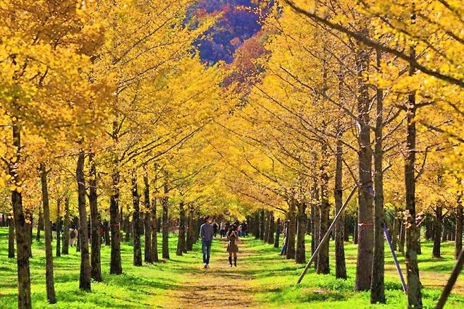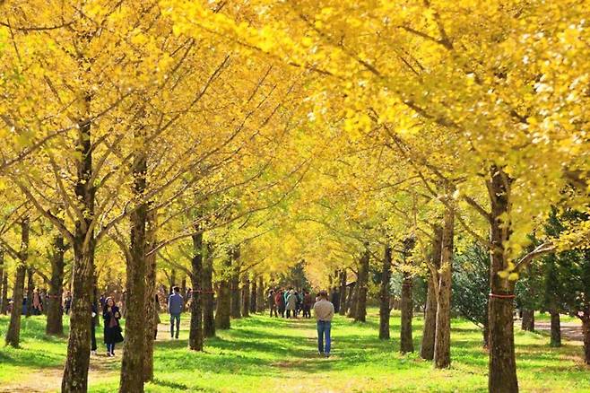 올해 노랗게 물든 가을 산책로를 거닐고 싶다면, 홍천 은행나무 숲을 10월에 찾아가 보길 추천한다.
