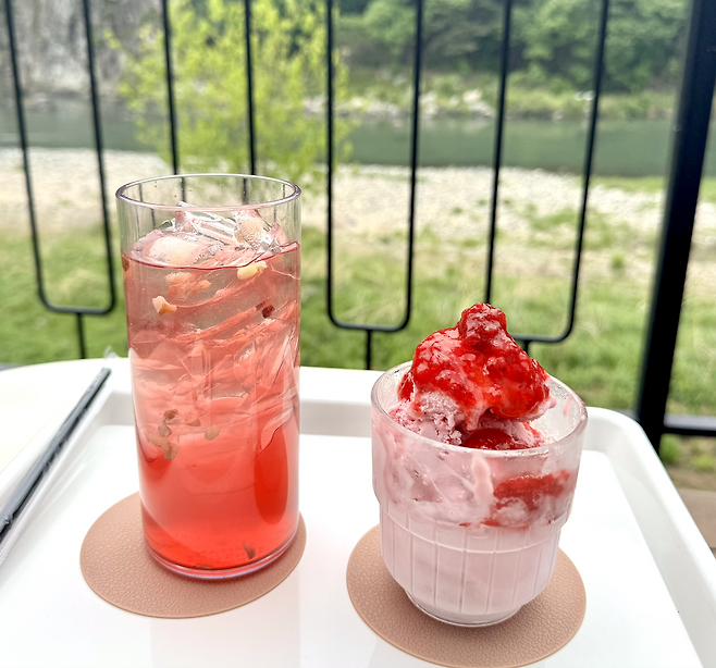 진남교반뷰를 보유한 그로체는 통창의 개방감과 테라스의 따뜻함을 보유하고 있는 곳이랍니다. 특히 인상깊었던 점은 관광지 근처에 있음에도 불구하고 디저트와 음료들이 너무 맛있었다는 점인데요,❤️ 오미자차, 아몬드크림라떼, 제주말차라떼 등 다양하게 맛 봤을 때 부족함 없이 잔뜩 만족스러운 맛이였답니다.🥰