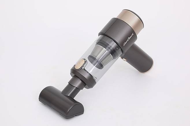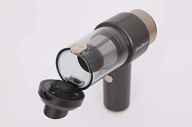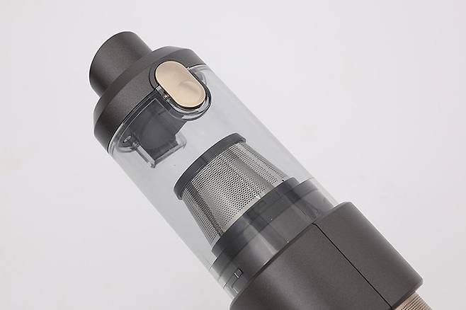 본체 앞쪽에 장착되어 있는 먼지통은 100㎖ 용량으로, 완전히 투명한 재질을 사용해서 먼지가 얼마나 모였는지 쉽게 확인할 수 있다.