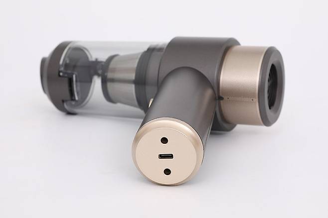 카슈아 에어건&미니 청소기 엔더스트의 손잡이 바닥 면에는 USB C타입 충전 포트가 있다. 여기에 케이블을 직접 연결해서도 충전할 수 있지만, 좀 더 편리한 방법이 제공되고 있다.