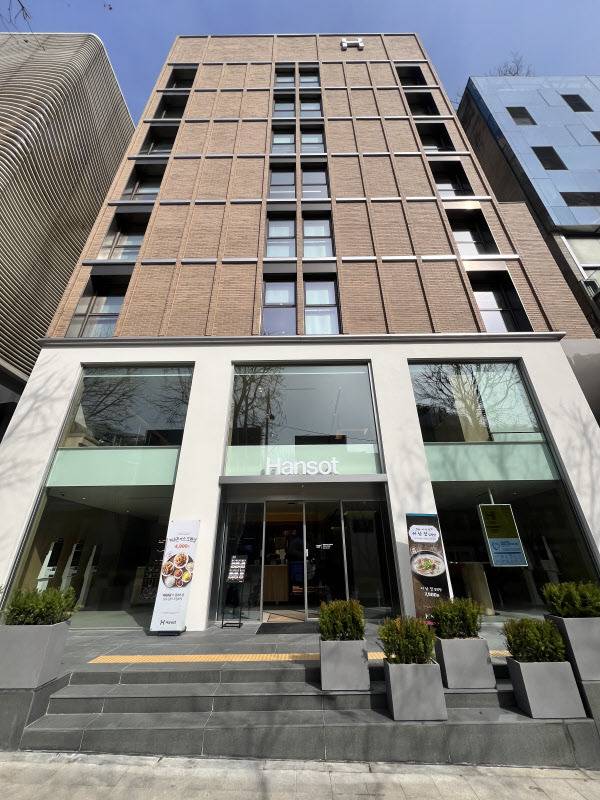 이 건물에서 직영점인 ‘한솥 청담 플래그십’을 작년2월19일부터 운영 중이다. 1층은 한솥도시락 직영 점포로, 2층 오픈형 아카이브 공간으로 구성했다. 지하엔 ‘한솥 아트스페이스’ 무료 전시관이 있다.